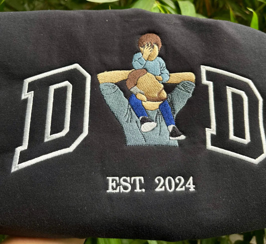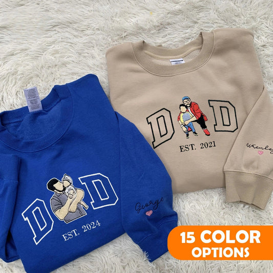 Personalised Embroidered Dad Sweater With Photo | Father's Day or Birthday Gift for Dad | Personalised Father Son Hoodie | Portrait Shirt
