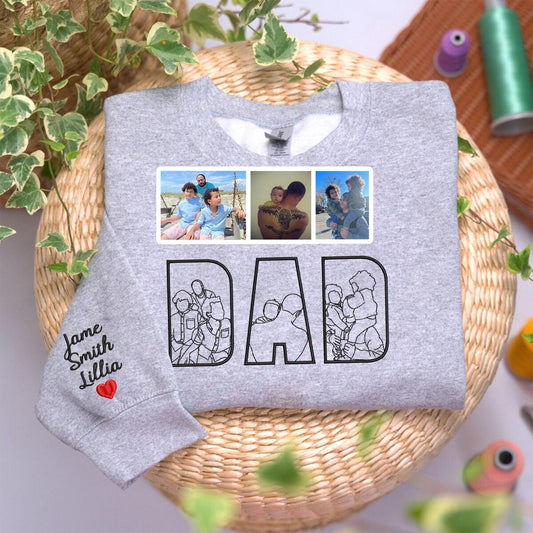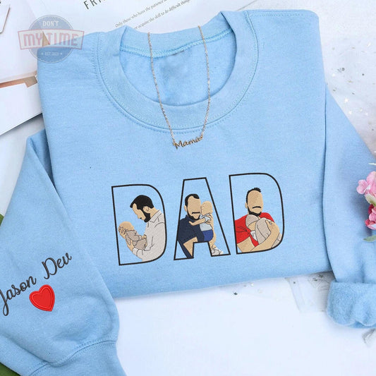 Father's Day Gift Custom Embroidered Portrait Photo Sweatshirt, Unique Gifts for Dad
