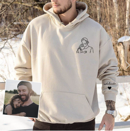Embroidered family portrait on hoodie, embroidered sweater for Mother's Day, sweaters with portraits of father and mother, gift for father and mother