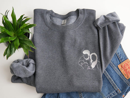 Father's Day Gift Custom Embroidered Personalized Embroidered Outline Photo Sweatshirt Gifts for Dad