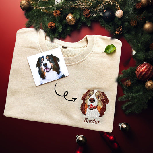 Personalized Sweatshirt with Pet Face and Pet Name Custom Embroidered