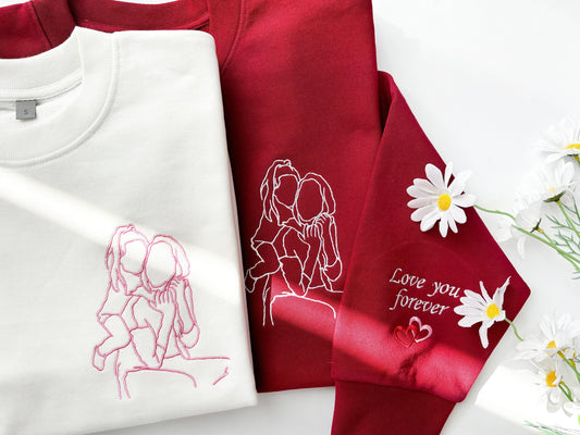 Birthday Gift for Couples - Custom Embroidered Portrait Sweatshirt