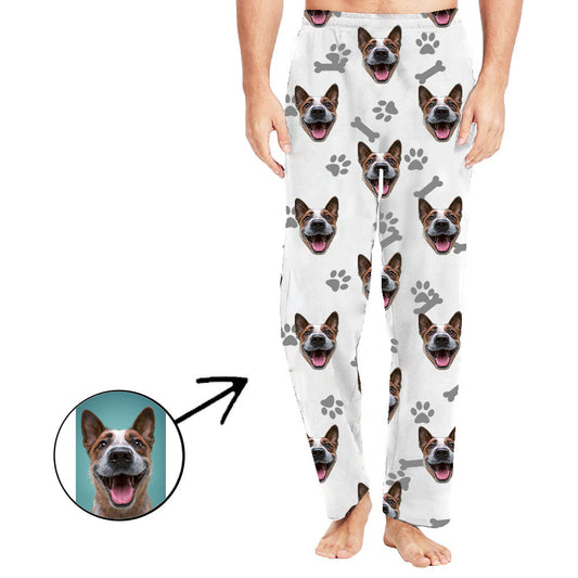 Custom Photo Pajamas Pants For Men Dog Footprint Long Sleeve Mother's Day Gifts