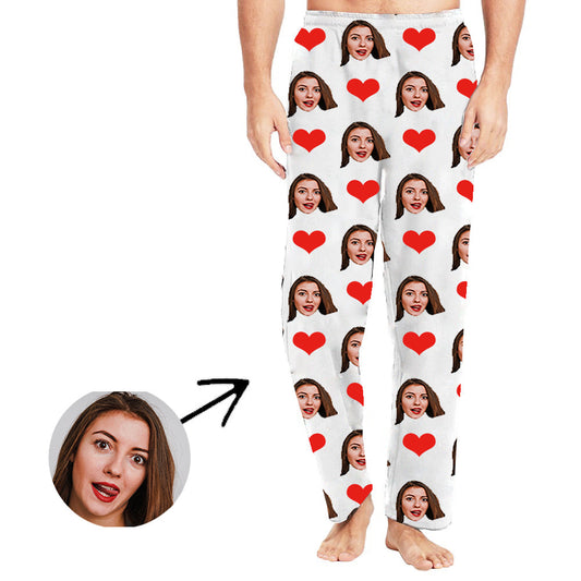 Custom Photo Pajamas Pants For Men Heart My Loved One's Face Long Sleeve