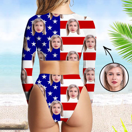 Custom Face Swimsuit Two Piece Face Swimsuit Face Bikini American Flag Personalized Bathing Suit For Women