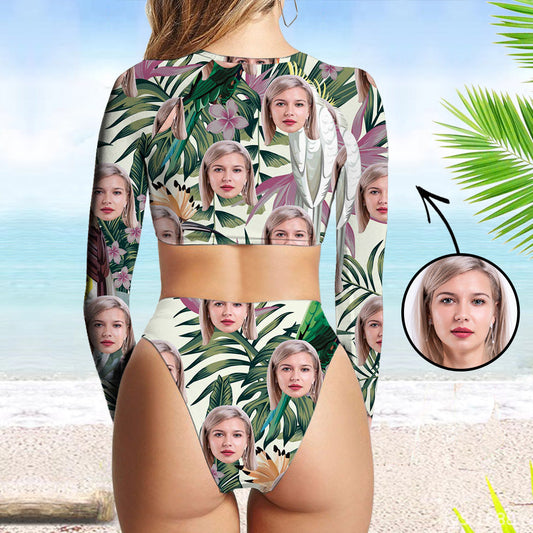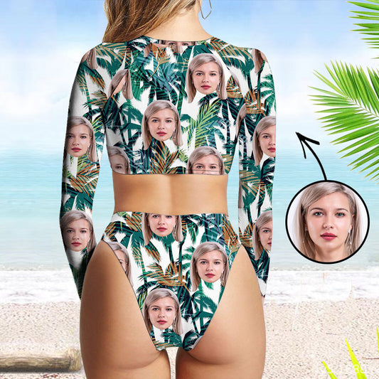 Custom Face Swimsuit Two Piece Face Swimsuit Face Bikini Tropical Vegetation Face Personalized Bathing Suit For Women