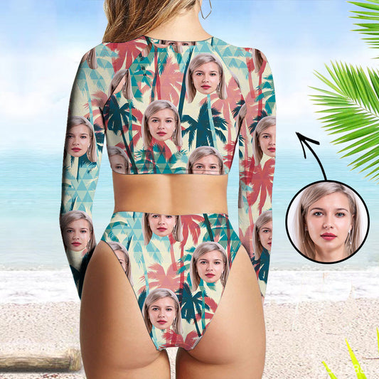 Custom Face Swimsuit Two Piece Face Swimsuit Face Bikini Tropical Island Face Personalized Bathing Suit For Women
