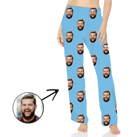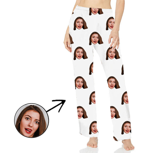 Custom Photo Pajamas Pants For Women Funny Mash Face Long Sleeve