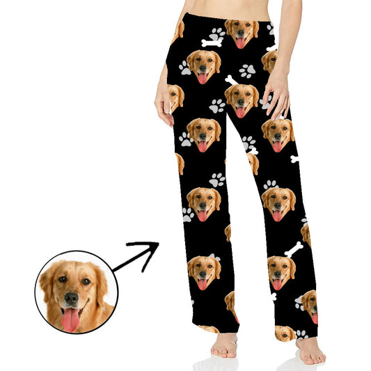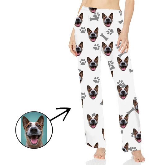 Custom Photo Pajamas Pants For Women Dog Footprint Long Sleeve