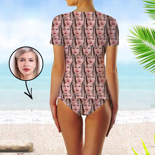 Custom Face Swimsuit Two Piece Face Swimsuit Face Bikini Mash Face Personalized Bathing Suit For Women Short Sleeve