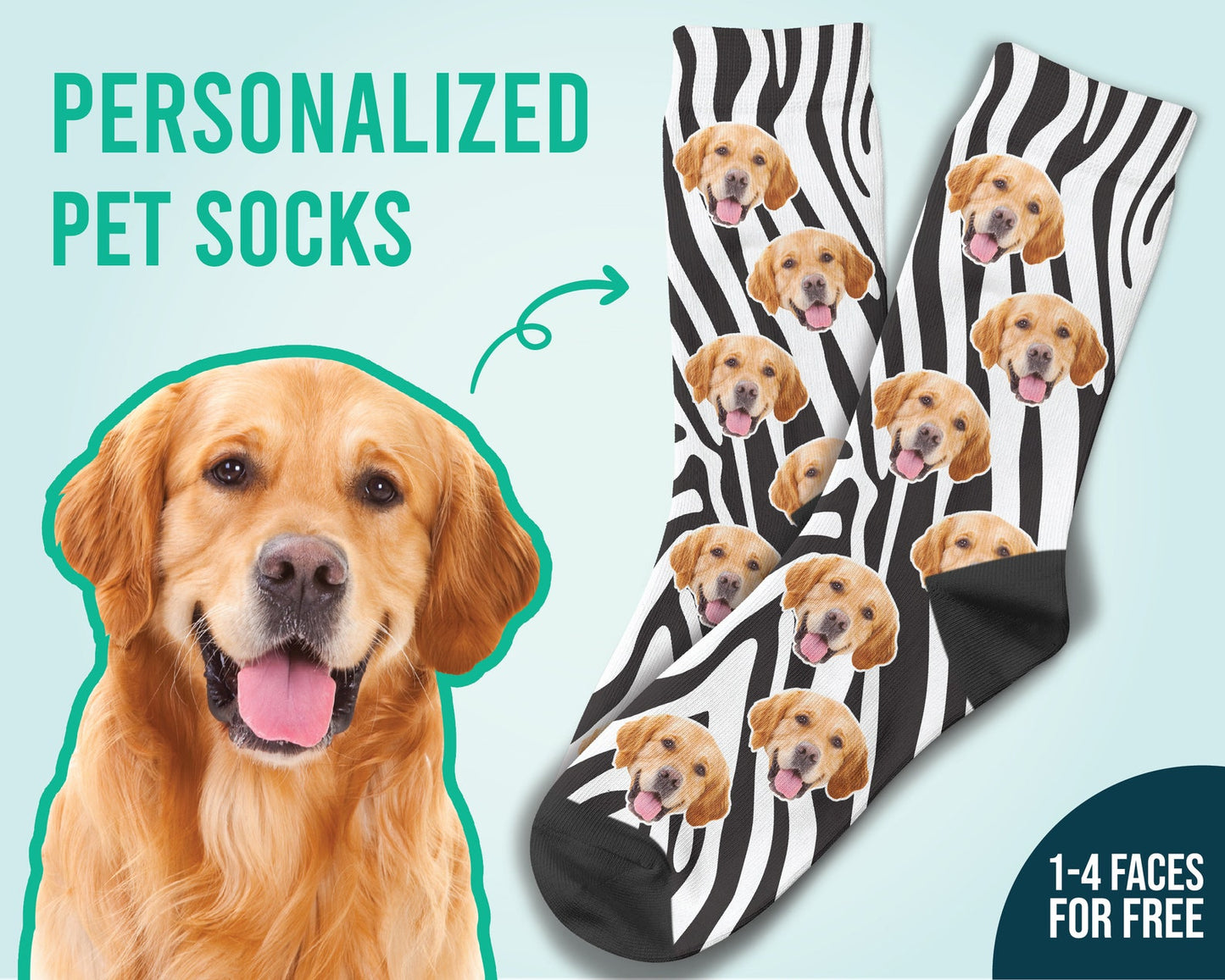 Custom Dog Face On Zebra Print Socks Personalized Best Seller