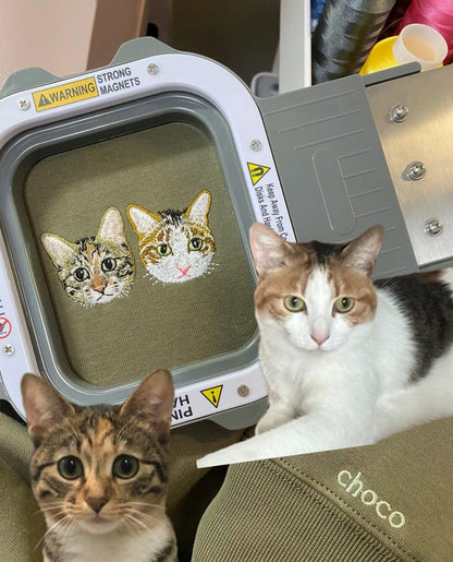 Give your love for your furry friend the perfect tribute with our custom embroidered pet sweatshirt! Whether it’s a T-shirt hoodie or sweatshirt, we’ll stitch your dog or cat’s adorable face directly from your photo, creating a one-of-a-kind wearable keepsake.