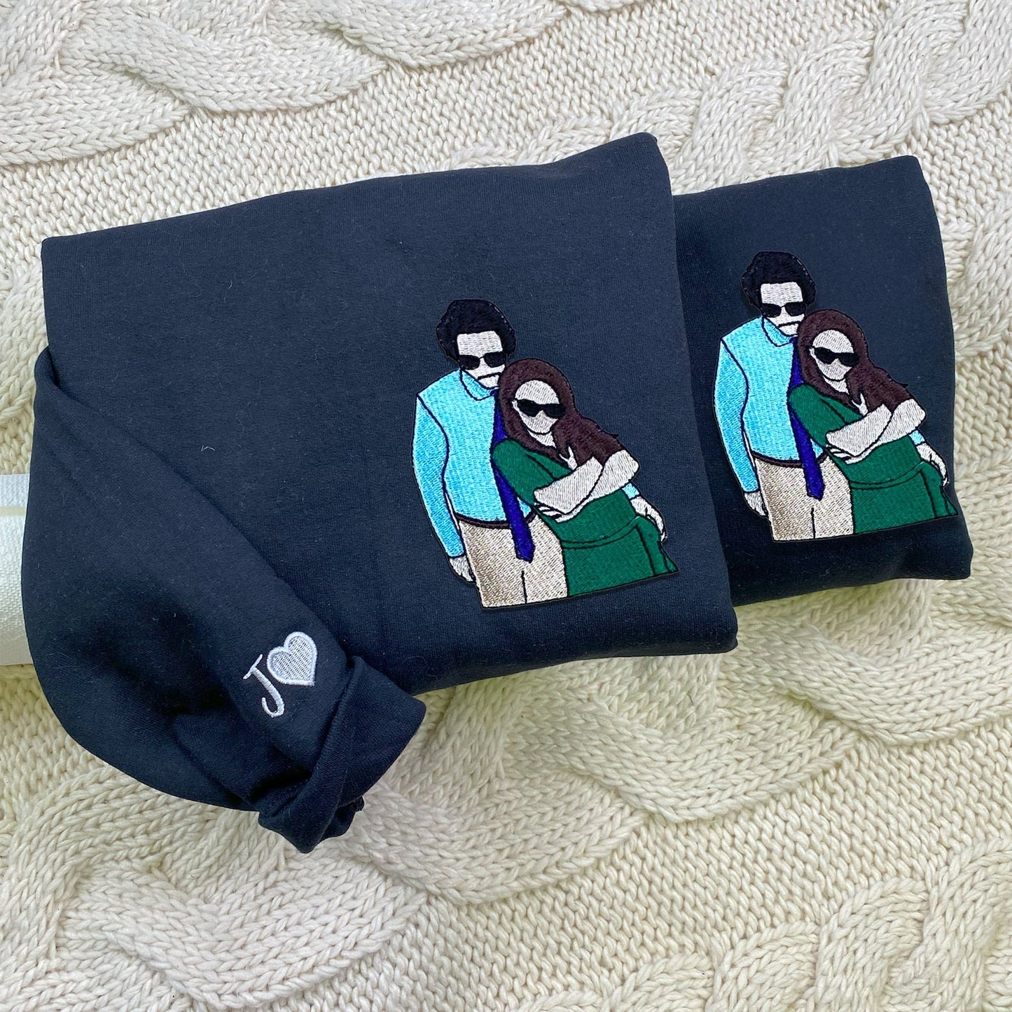 Celebrate your love in the coziest way possible with our custom embroidered couple hoodies! Whether it's for Valentine's Day, your anniversary, birthdays, or just because, these matching sweatshirts feature your faces beautifully embroidered with a sweet heart design, creating a unique and heartfelt gift for couples, LGBTQ+ partners, boyfriends, girlfriends, or spouses.