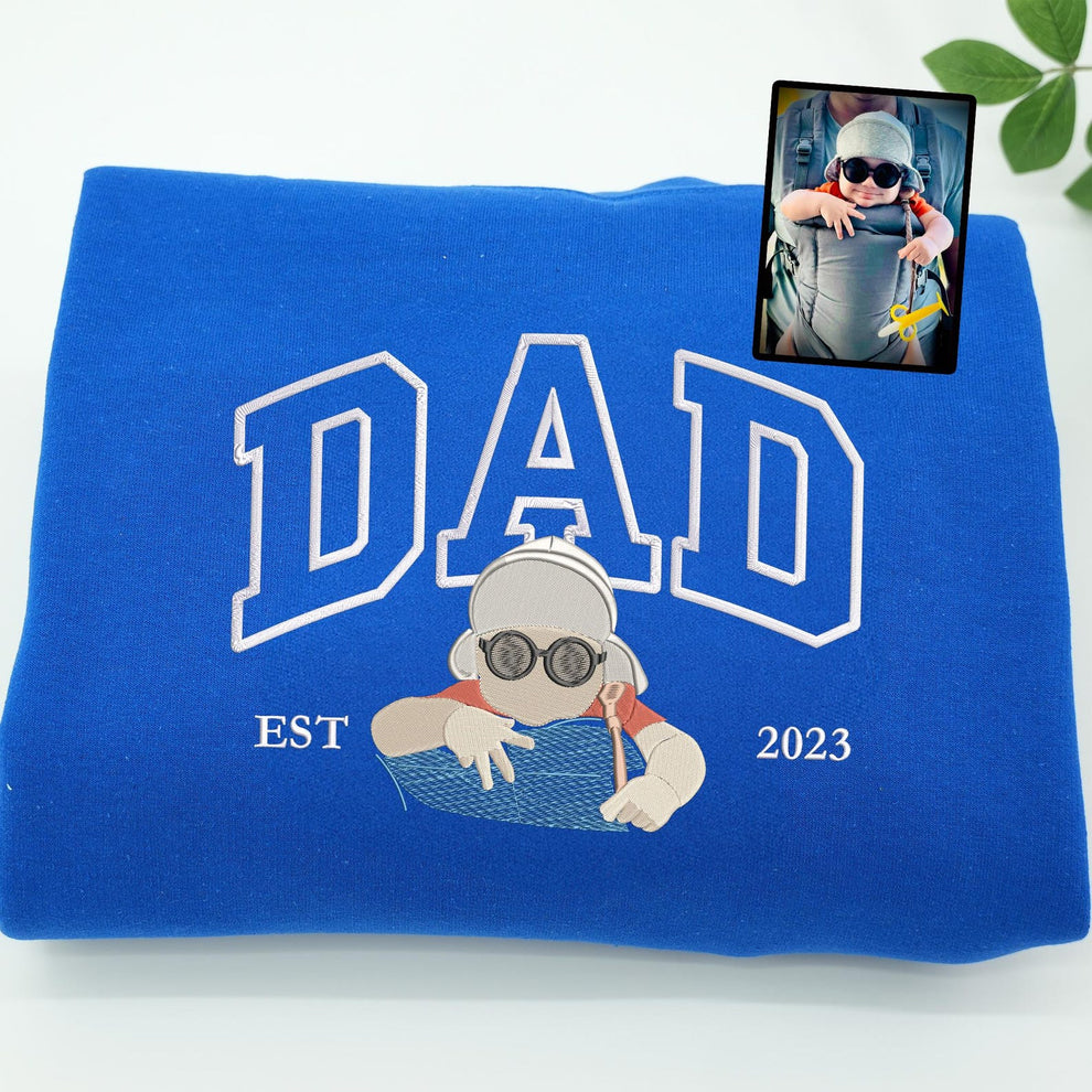Personalised Embroidered Dad Sweater With Photo | Father's Day or Birthday Gift for Dad | Personalised Father Son Hoodie | Portrait Shirt Best Seller