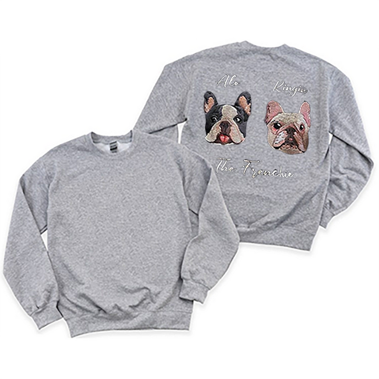 Give your love for your furry friend the perfect tribute with our custom embroidered pet sweatshirt! Whether it’s a T-shirt hoodie or sweatshirt, we’ll stitch your dog or cat’s adorable face directly from your photo, creating a one-of-a-kind wearable keepsake.